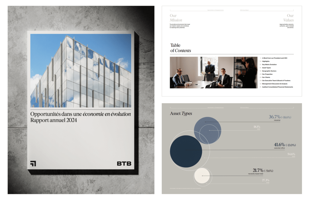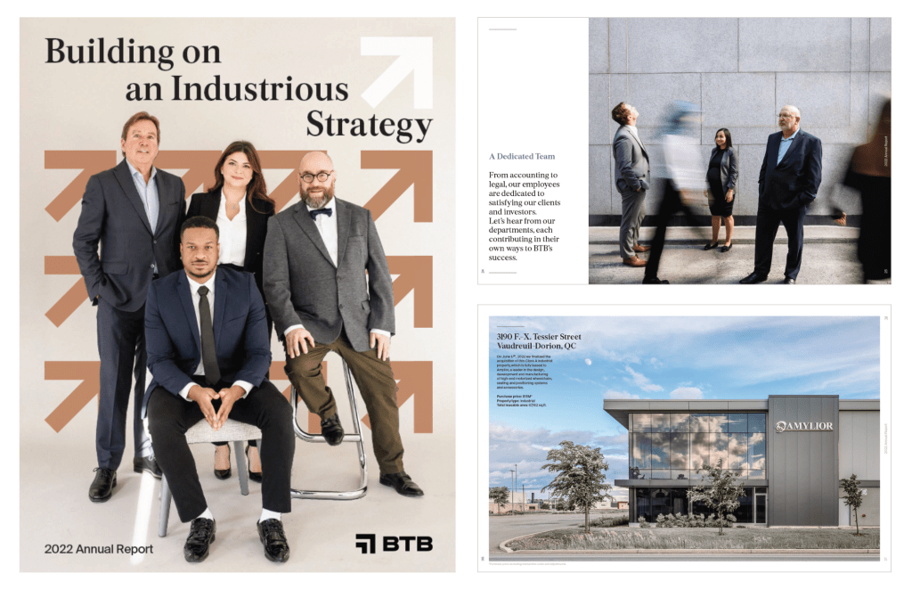 Quarterly financial report meets editorial magazine, for a commercial real estate company whose brand is defined by modern elegance and a commitment to putting people first.